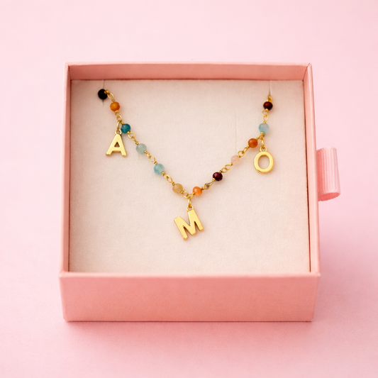 Collar bolitas 3 iniciales