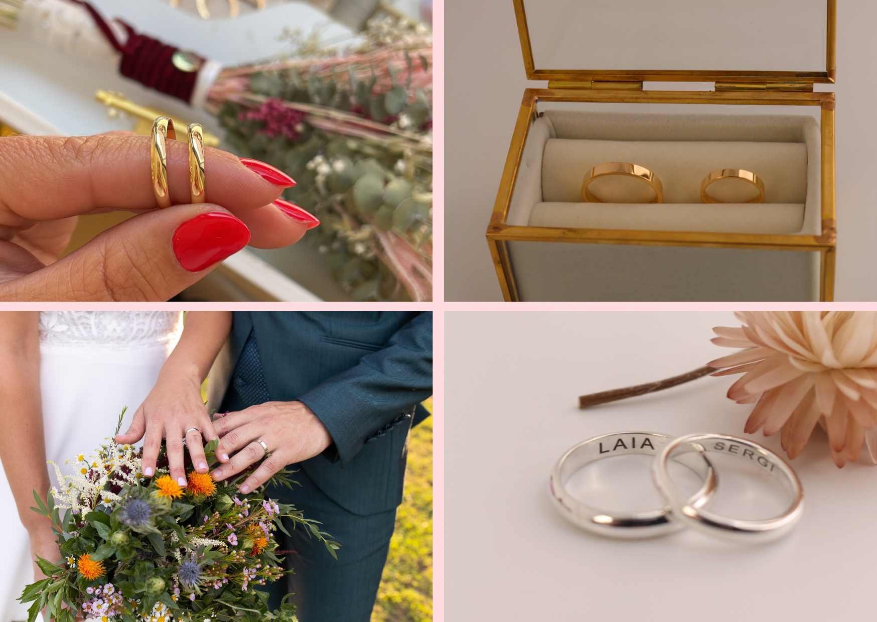 En Gemma's Joies trabajamos con talleres de proximidad para crear tus alianzas, tanto si las quieres de Oro de 18k, de 9k, o como si las prefieres de Plata de Ley. Nos ajustamos a todo tipo de gustos y presupuestos.
