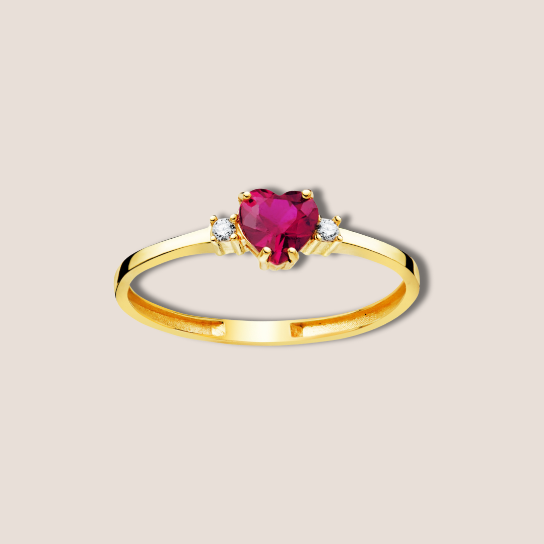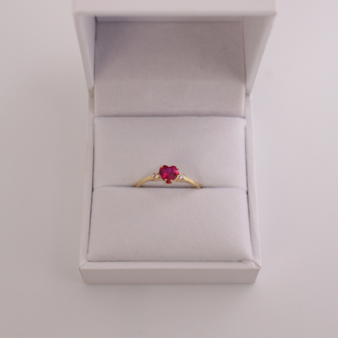 Material: montura de Oro de 18k con una zirconita central en forma de corazón y dos zirconitas blancas a su alrededor.