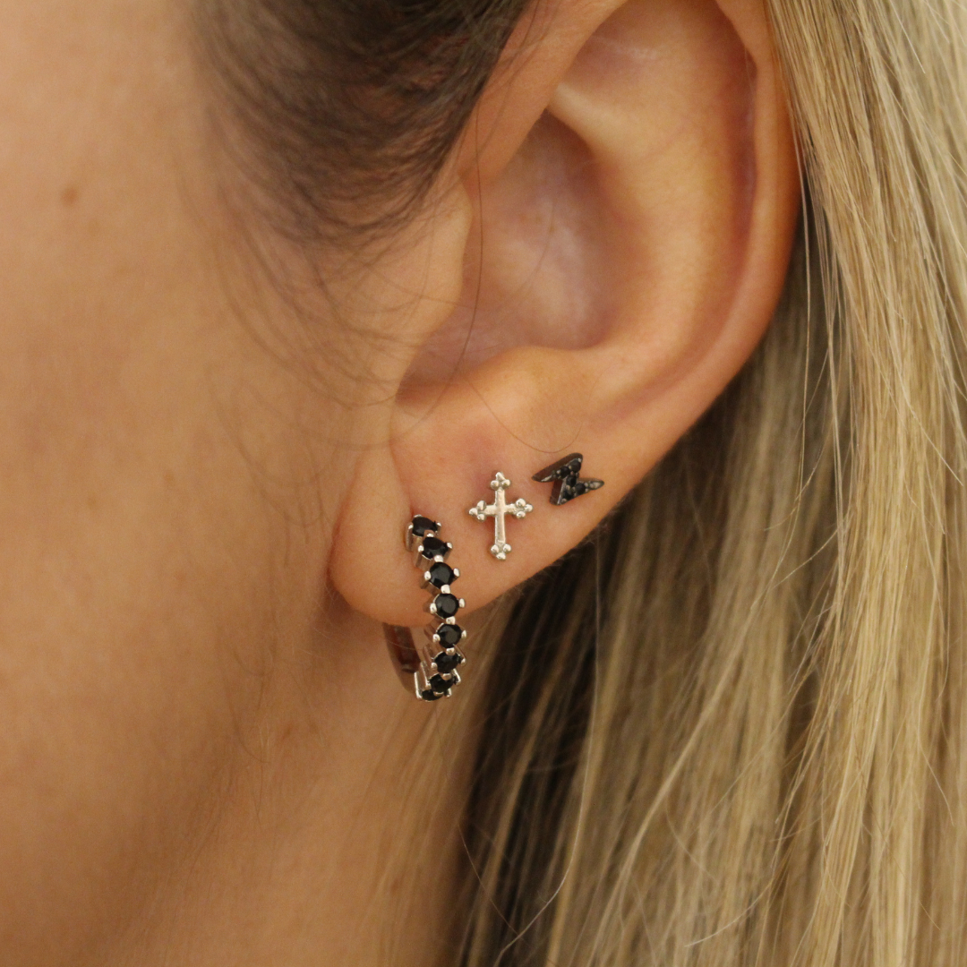 Su diseño clásico con un aire moderno, engastado con circonitas negras de alta calidad, aporta profundidad y carácter a cualquier look.