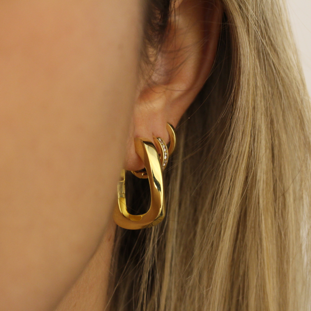 Los aros con formas orgánicas son tendencia y este modelo es una fiel representación de la moda que ya esta conquistando los joyeros de las más influyentes. Unos aros macizos de Plata, con un diseño brutal, de esos que ves y te enamoras y con un cierre cómodo y muy práctico.