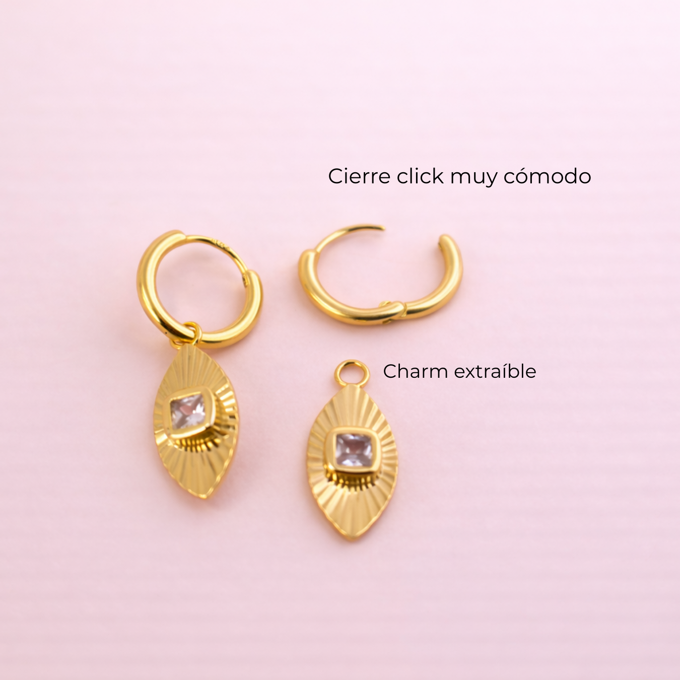 Además, son dos pendientes en uno. El charm es extraíble, por lo que puedes llevarlos de dos maneras distintas: