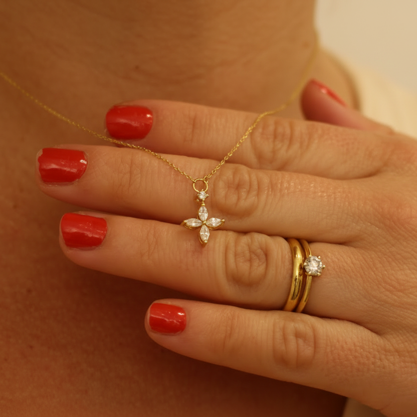 Un collar de oro pensado para mujeres que buscan elegancia, sencillez y un toque de brillo perfecto.