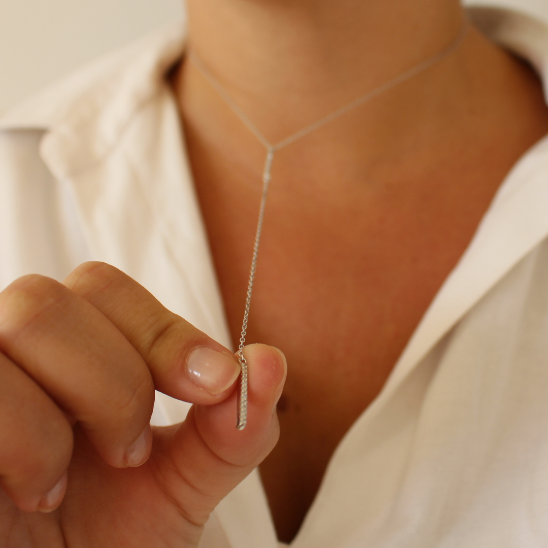 Minimalista y delicado, el Collar Laura se presenta en un elegante diseño estilo corbata, tendencia absoluta esta temporada. Su sutil brillo aporta un aire romántico y sofisticado, perfecto para elevar un look diario con camisa o acompañar un vestido sexy en una ocasión especial. Una joya versátil y femenina que transmite elegancia con un toque seductor.