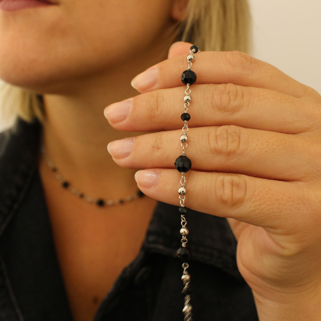 Confeccionado a mano, combina delicadas bolas de plata de ley 925 con minerales naturales que aportan fuerza y color: