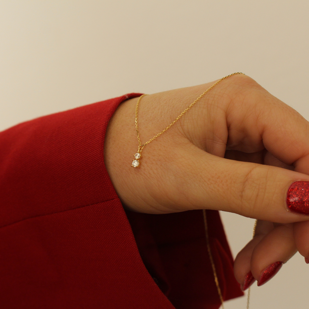 El Collar twin es una joya delicada, romántica y atemporal. Su diseño minimalista con dos puntos de luz aporta un brillo sutil y elegante, perfecto para quienes prefieren la discreción sin renunciar a una joya especial.