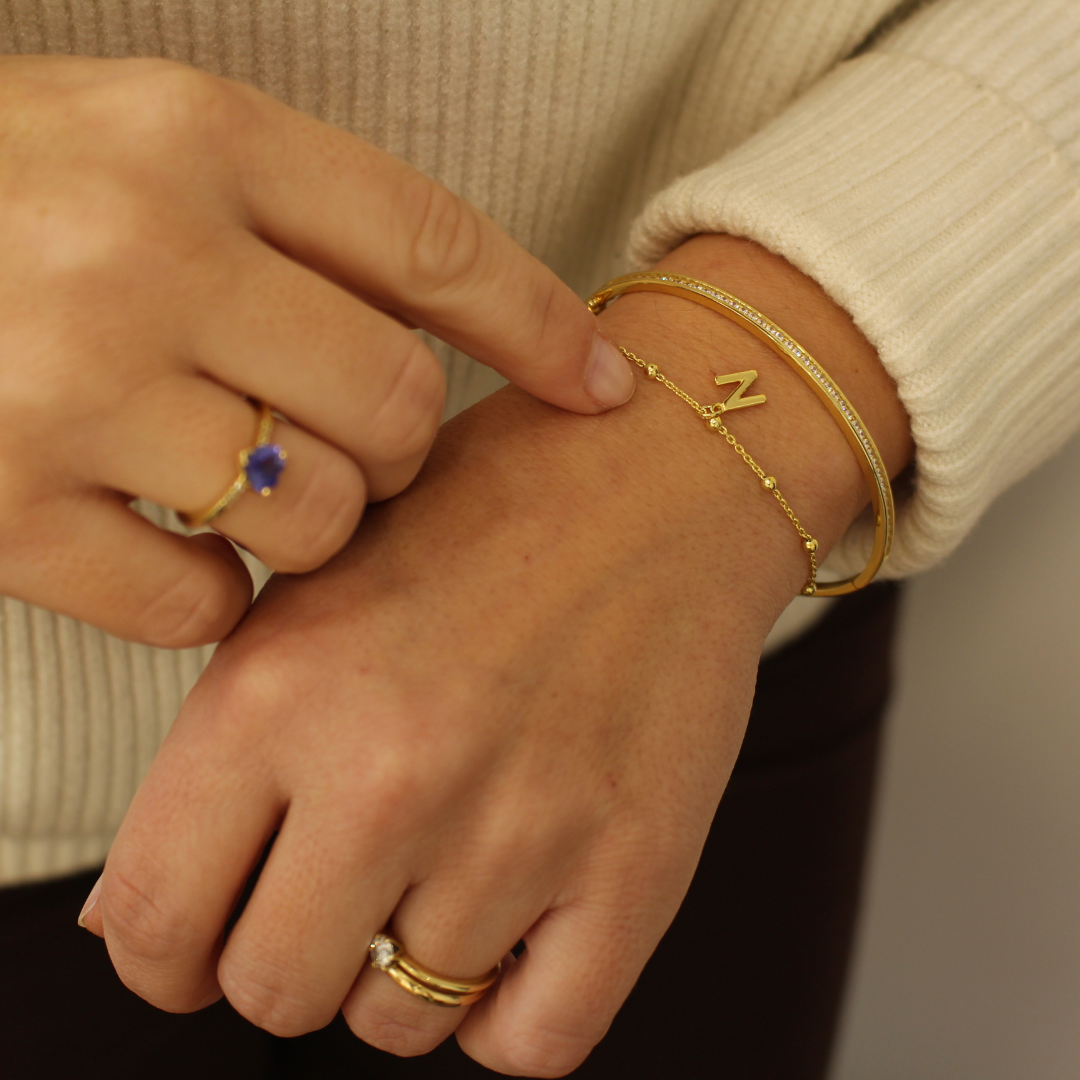 Elige la inicial que más te represente y nosotras crearemos tu pulsera de forma artesanal, cuidando cada detalle.