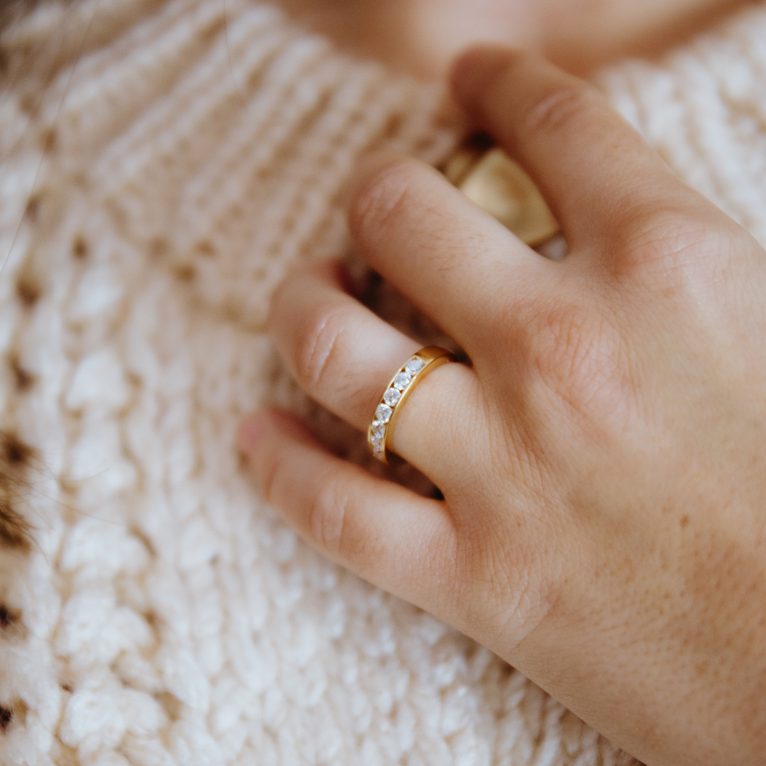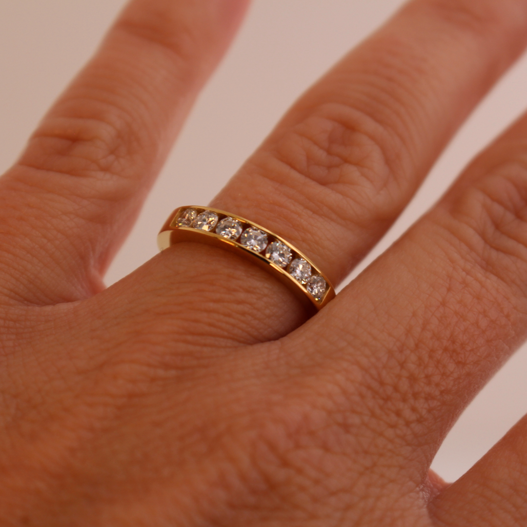 El Anillo Semialianza 7 Diamantes es una joya atemporal que combina elegancia, brillo y equilibrio en su máxima expresión.